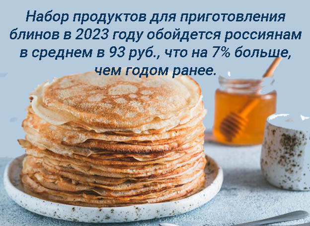 Они пришли к выводу, что в среднем по России цена выросла на семь процентов за год и составила 93 рубля: именно столько нужно для покупки «блинного» продуктового набора, в который входит поллитра молока, два яйца, 200 граммов муки, три столовых ложки подсолнечного масла, чайная ложка сахара и пол-ложки соли.