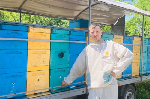 Мёд начинает он собирать ранней весной, каждые две недели перевозя пасеку по разным медоносам юга России.
