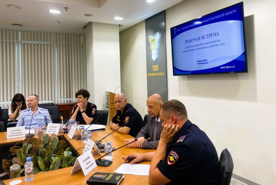 23 августа 2024 года на площадке Союза «Торгово-промышленная палата Ростовской области» состоялась рабочая встреча с представителями Управления по вопросам миграции ГУ МВД России по Ростовской области.