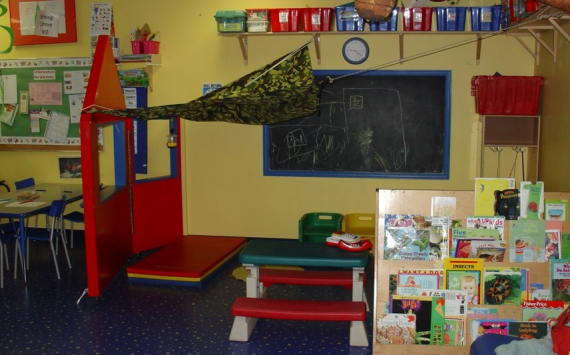 В детском саду сделали медицинский блок. В нем установили кушетки, весы, ростомер и бактерицидные лампы. Здание огорожено и освещено. По периметру установлены камеры видеонаблюдения. Для детей сделали физкультурную площадку и прогулочные павильоны.
