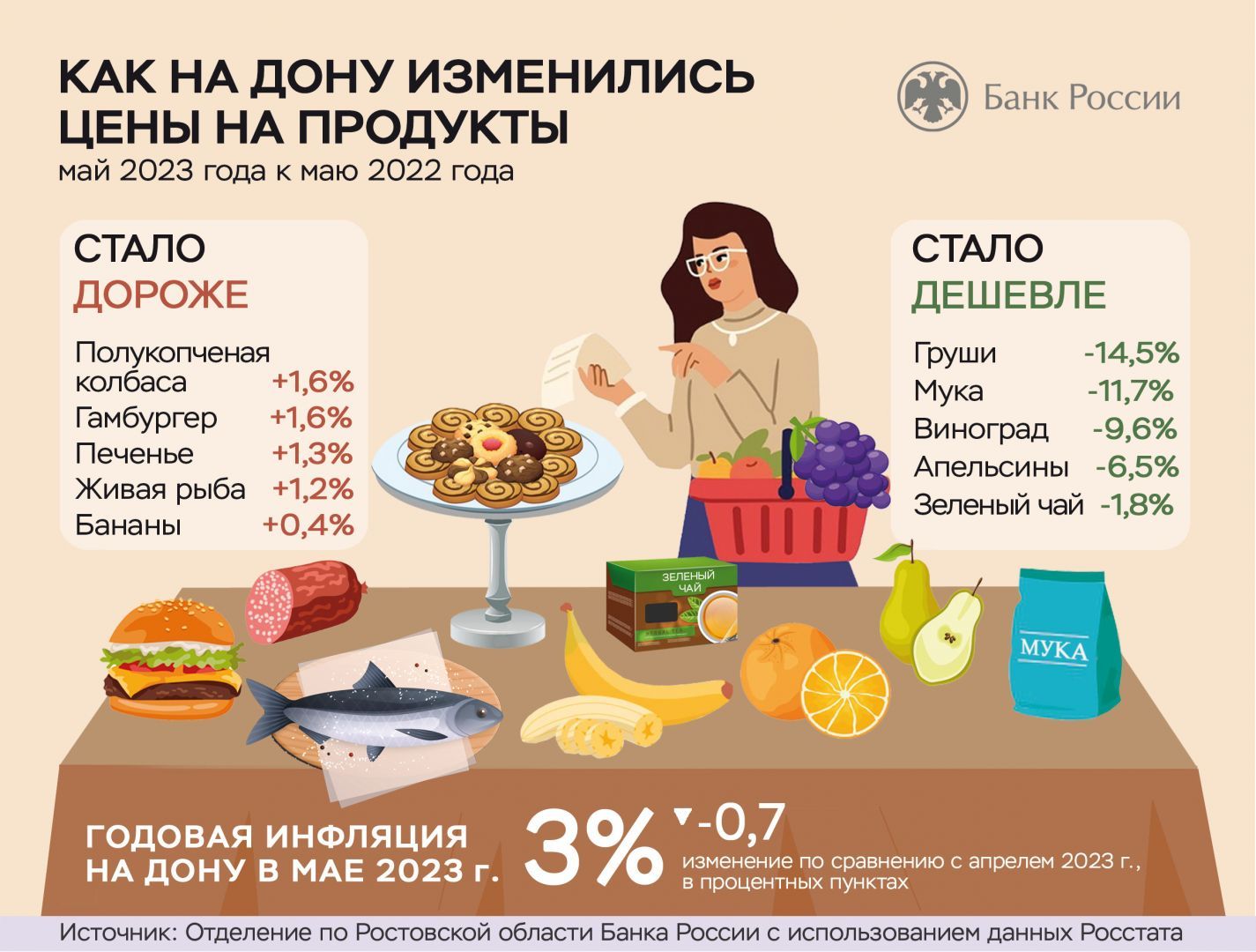 Годовая инфляция снизилась в донском регионе. Так, в мае текущего года она составила 3%. Об этом сообщает пресс-служба Отделения по Ростовской области Южного ГУ Банка России.