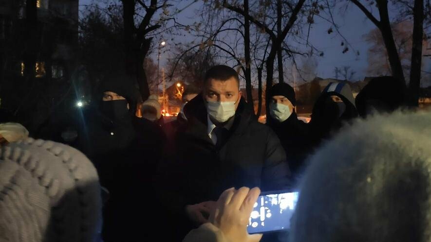 Егор Долматов в центре кадра в белой маске на встрече с жителями Кривошлыковского / Фото - архив 1rnd