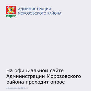 Принять участие в опросе предлагается на официальном сайте администрации Морозовского района https://pos.gosuslugi.ru/lkp/polls/439133/?utm_source=widget&utm_medium=municipality&utm_campaign=pos.gosuslugi.ru&utm_content=60634000&utm_term=584_1026101285980_6121903583_612101001