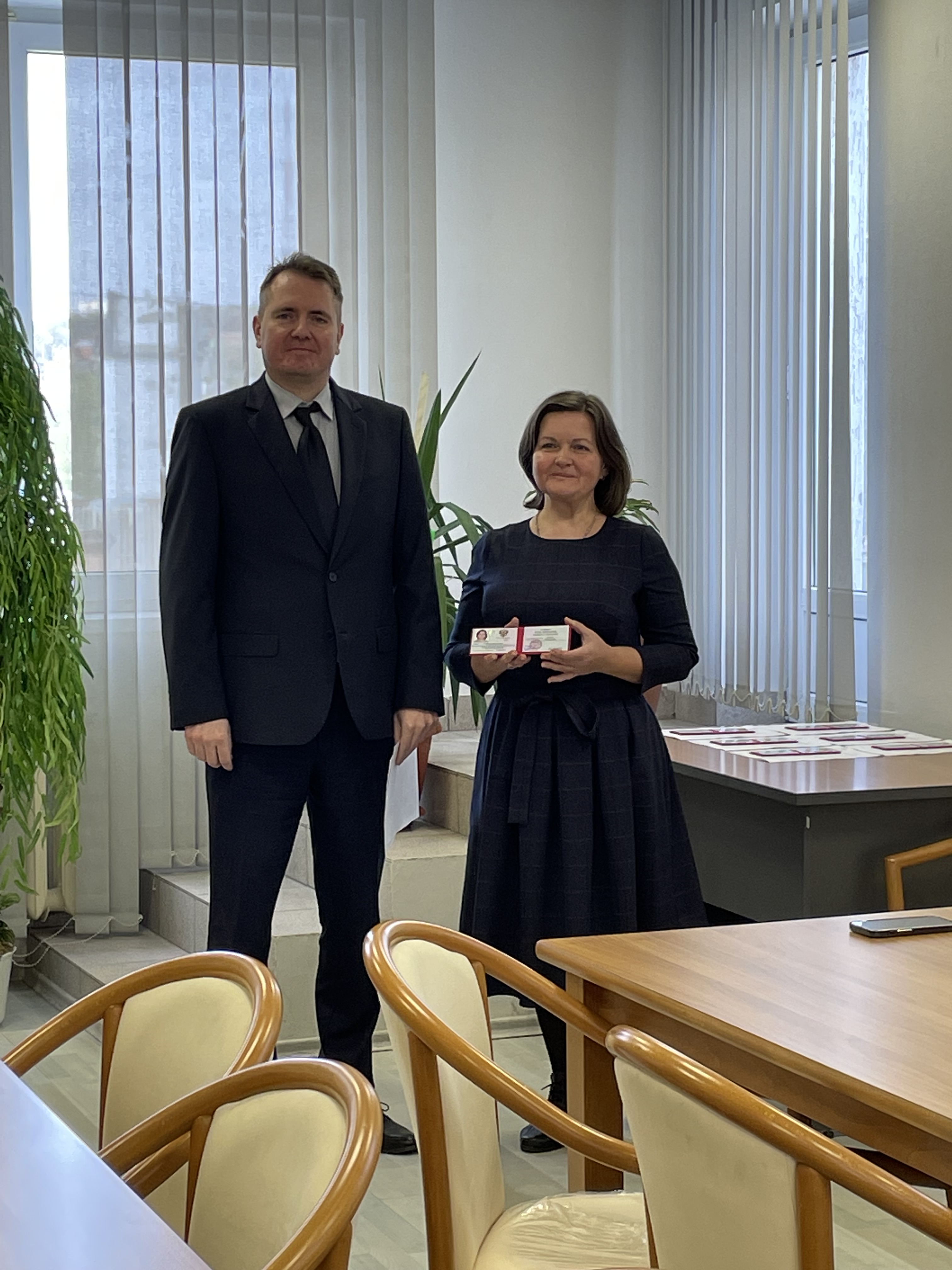 18 апреля 2023 года заместитель начальника Главного управления Министерства юстиции Российской Федерации по Ростовской области С.М. Олейник и вице-президент Адвокатской палаты Ростовской области С.В. Панасюк в торжественной обстановке вручили удостоверения адвоката лицам, успешно сдавшим квалификационный экзамен на приобретение статуса адвоката.