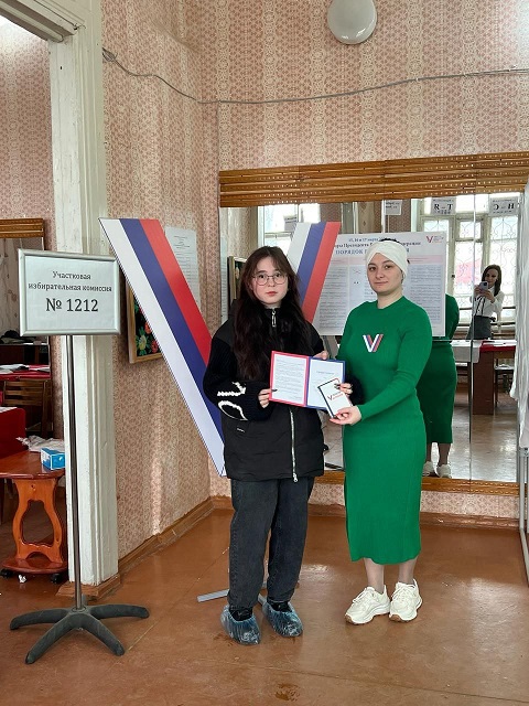 Голосующие впервые получают символичные подарки от избирательной комиссии.