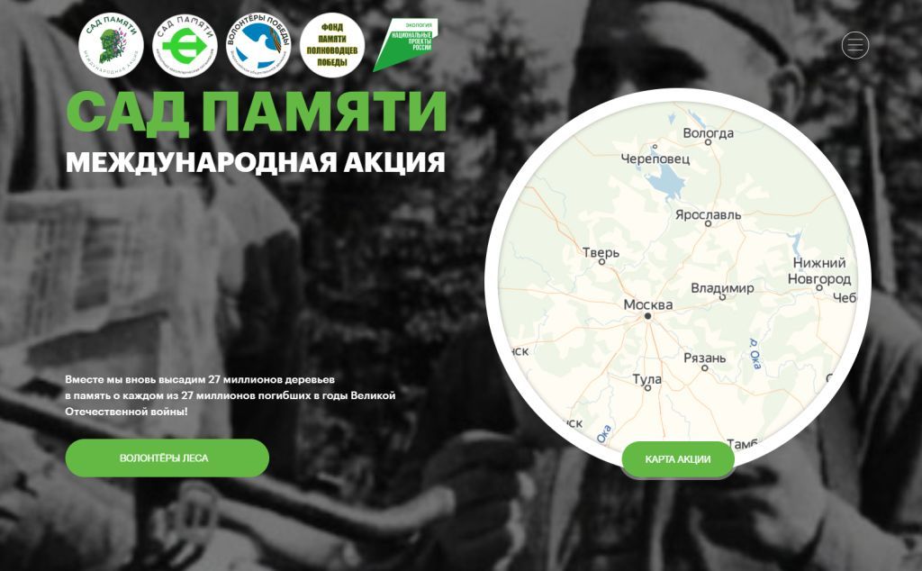 18 марта в России стартует четвертый сезон международной акции «Сад памяти». Акция проходит по поручению Президента России Владимира Путина, который посадил свое дерево памяти у Ржевского мемориала. В ходе акции, которая объединяет сотни тысяч небезразличных жителей России и всего мира, будет посажено 27 миллионов деревьев в память о каждом погибшем в годы Великой Отечественной войны.