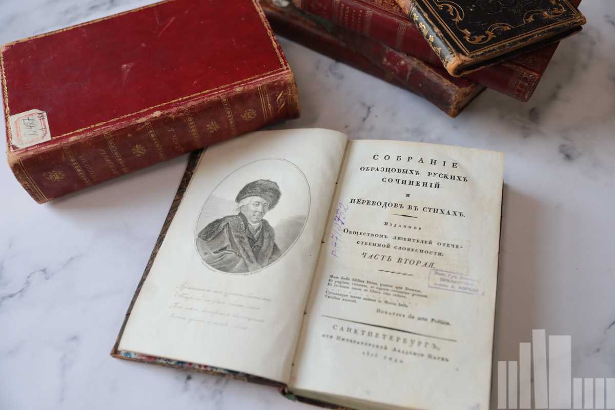 Первая экспозиция посвящена писателям и поэтам XVIII-1-й половины XIX в.в. На выставке демонстрируются редкие прижизненные издания Г. Р. Державина, И. А. Крылова, В. А. Жуковского, А. А. Погорельского, И. И. Лажечникова.#провыставки