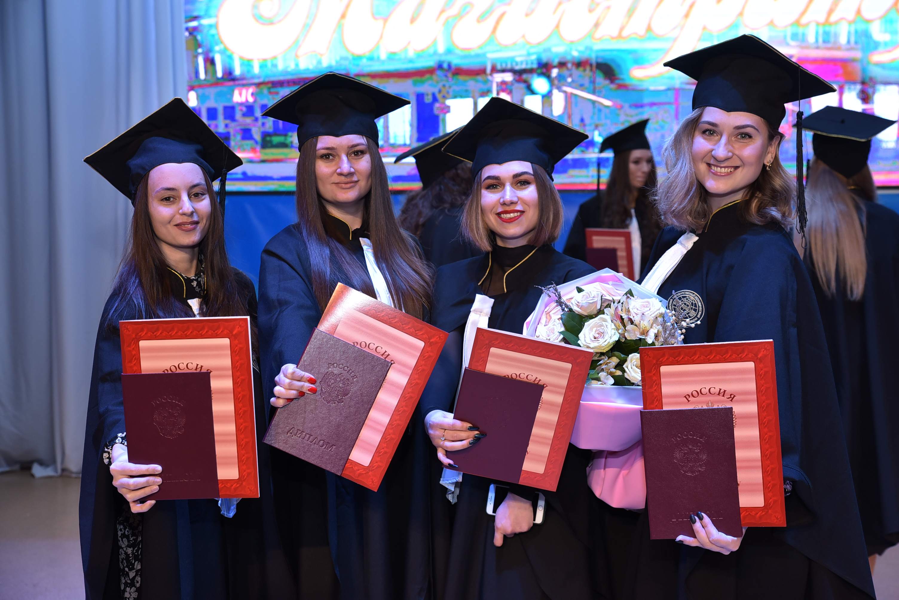 Диплом о высшем образовании получили 448 магистров по направлениям «Экономика», «Юриспруденция», «Торговое дело», «Финансы и кредит», «Информационная безопасность», «Прикладная математика и информатика», «Менеджмент», «Лингвистика», «Журналистика» и другим. Из них 230 выпускников окончили обучение с отличием.