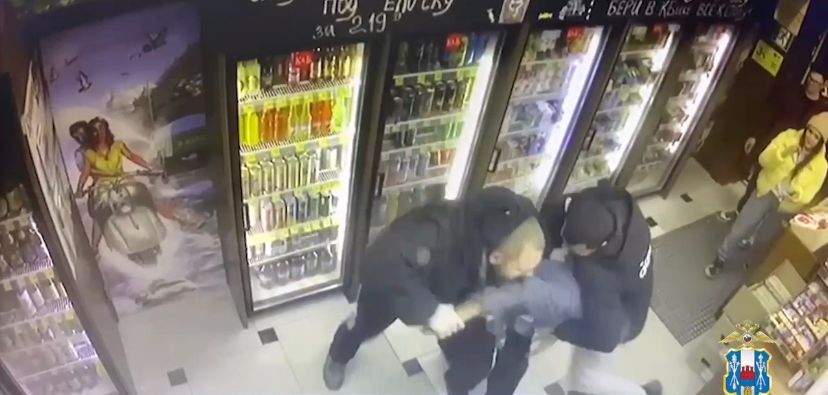Фото: В Таганроге полицейский обезвредил преступника, угрожавшего боевой гранатой продавцу магазина\\кадр оперативной съемки