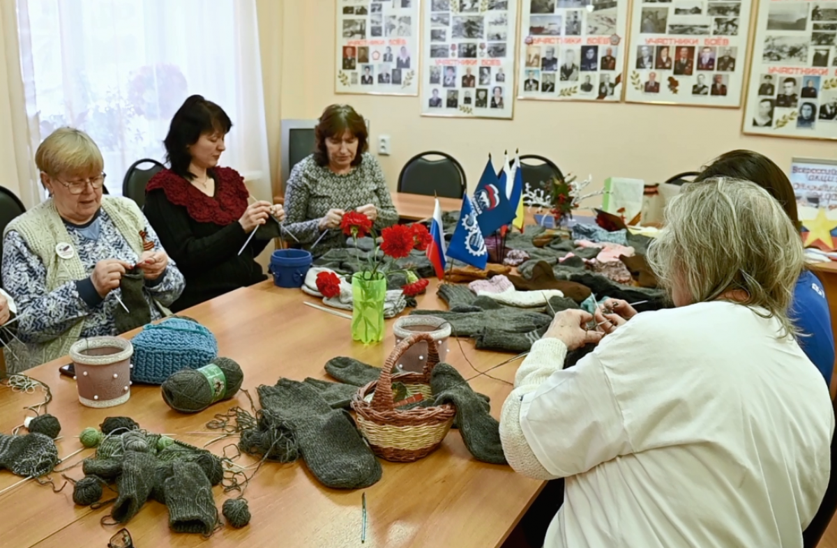 Парламентарий вместе с «серебряными» волонтерами включилась в работу по сбору вязаных вещей для участников СВО.