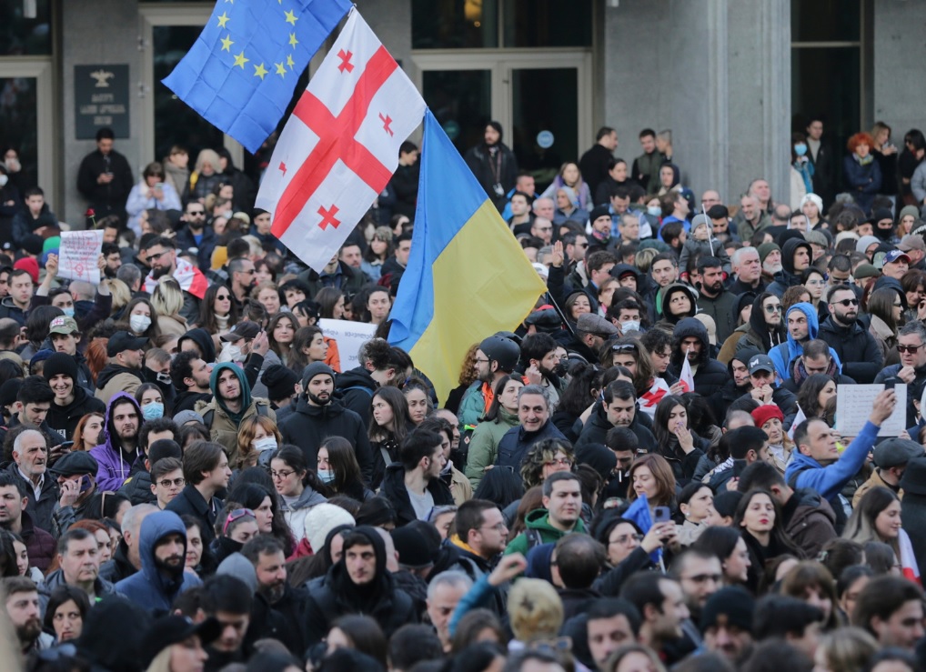 Над грузинским майданом развеваются украинские флаги и звучит украинский гимн. Правда, сценарий «мероприятия» не меняется.