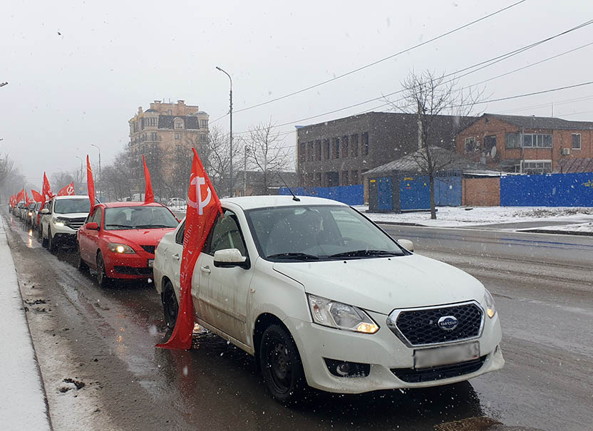 Коммунисты, комсомольцы и стороники КПРФ донской столицы провели автопробег, приуроченный к 80-летию со дня освобождения Ростова-на-Дону от немецко-фашистских захватчиков.