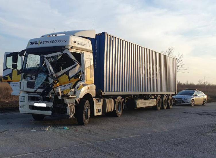 Под Ростовом дорогу не поделили два грузовика