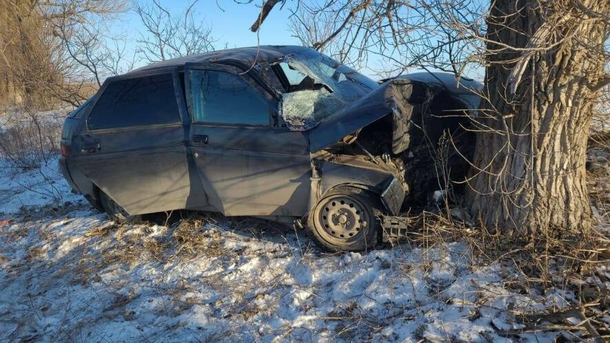 После удара «двенадцатая» слетела на обочину и врезалась в дерево. Передняя часть машины сильно деформировалась.