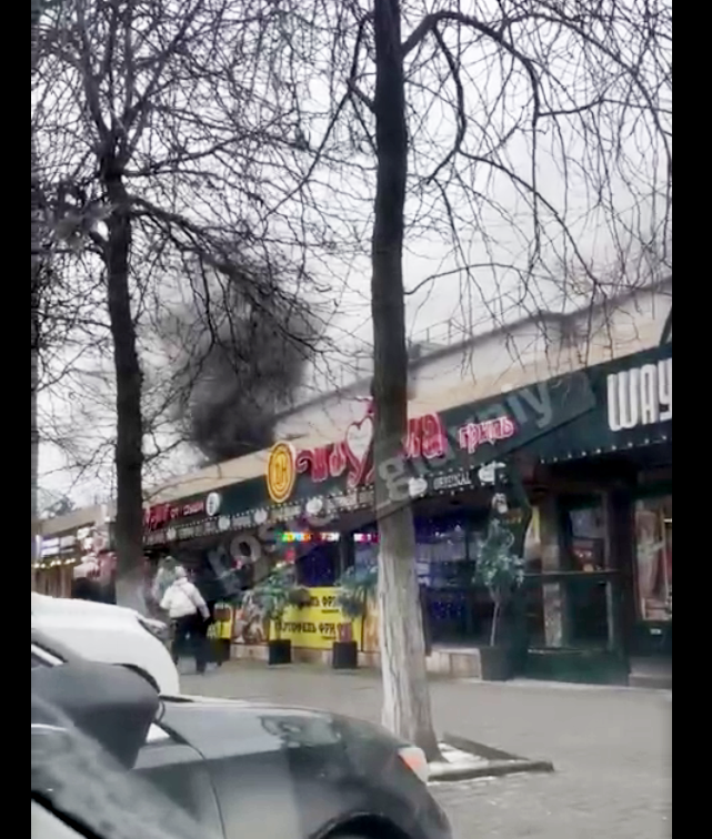 Дым из-за здания ресторана шаурмы // фото: скриншот видео ростовского блогера в ТГ rostov_glavniy