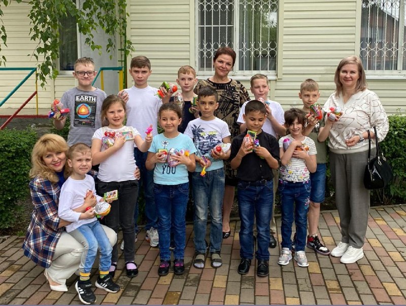 Члены женсовета вместе с председателем Еленой Ягольник поздравили ребят с Днем защиты детей и раздали им сладкие подарки.