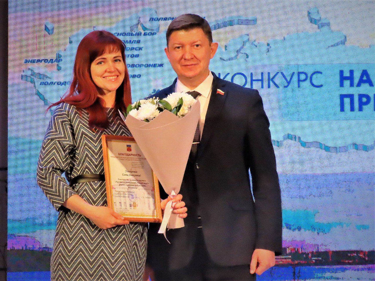 Также на большой сцене вручили награды победителям конкурса «Народное признание» — совместного проекта концерна «Росэнергоатом», Общественной палаты Волгодонска и Центра социальных проектов «Белый Дом» — проведенного при поддержке администрации, Думы Волгодонска и Ростовской атомной станции.