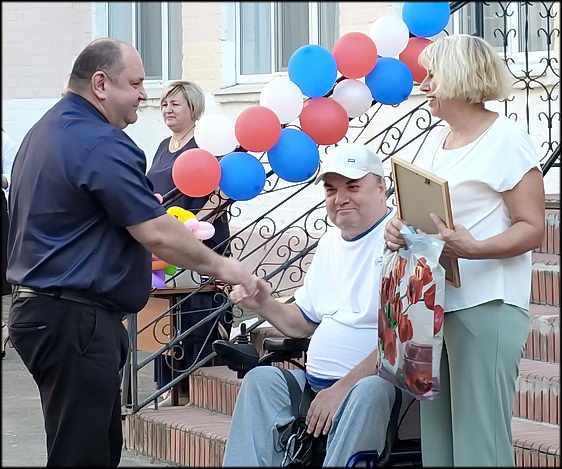 Он поблагодарил и вручил подарки многим жителям — активистам микрорайона . Среди них Л.А.Плотникова, Д.Т.Приходько, Л.К.Мельникова, Ф.В.Дебушевский, А.А.Протакин, В.А.Курганова, В.В.Каплунова, Н.И.Маас, Е.О.Морозова, Г.И.Ишова, Т.Н.Сашко, Е.В.Крыга, А.К.Букал и многие, многие другие жители микрорайона.