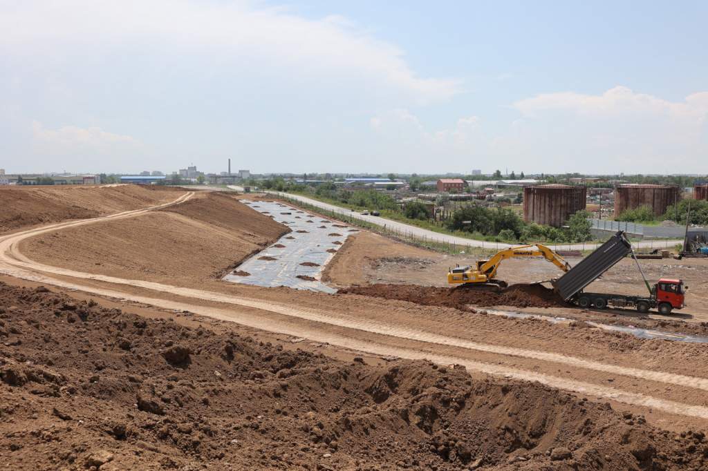 На сегодня подрядчиком сформировано «тело» полигона, выполняются работы по укладке слоев из геосинтетических материалов. Ведутся монтаж геомембраны, устройство защитного слоя, укладывается труба для пассивной дегазации, отсыпается слой из суглинка в хозяйственной зоне.
