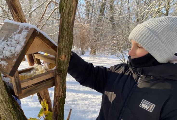 Активисты движения «ДоброТворцы» школы № 10 вместе с педагогами Станции юных натуралистов изготовили кормушки из подручных материалов и развесили их в Парке культуры и отдыха им. М. Горького. А затем разложили в кормушки традиционный корм для птиц — овёс, семечки подсолнечника, семена тыквы, крошки пшеничного хлеба, сушёные ягоды, фрукты.