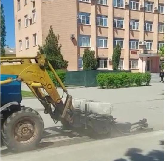 Администрацией города приобретена дорожная щетка с бункером для уборки придорожных обочин и тротуаров.