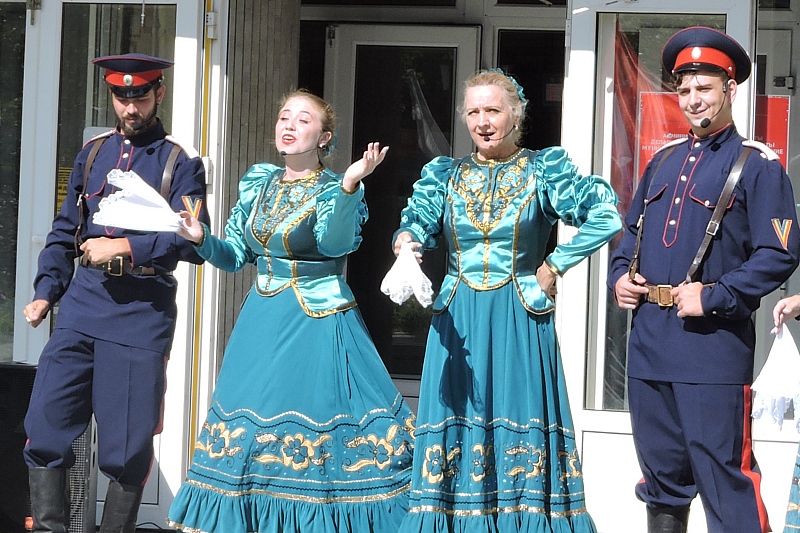 Перед входом в ГДКиК хорошее настроение избирателям создавали артисты муниципального ансамбля песни и пляски «Надежда».