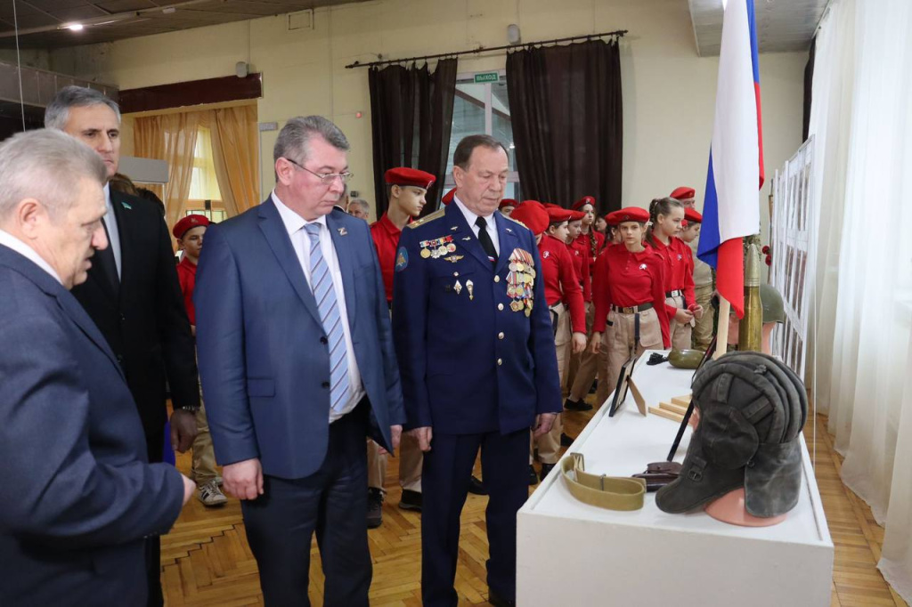 Выставка посвящена павшим в СВО батайчанам. В зале представлены памятные фотографии, трофеи из зоны СВО. Отмечу, что сегодня представитель волонтеров Батайск_ZOV передала на хранение в музей флаг, подписанный нашими десантниками, которые находятся на передовой.