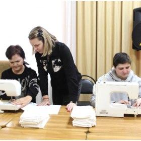 В отделении дневного пребывания Центра социального обслуживания проводятся занятия по освоению различных видов декоративно-прикладного творчества. Недавно ребята приступили к обучению работе на швейной машине, и под руководством специалистов отделения шьют полотенца для военнослужащих, находящихся в зоне проведения специальной военной операции. Также бойцам на передовую будут переданы поздравительные открытки с Днем защитника Отечества, которые ребята сделали вместе с волонтерами.