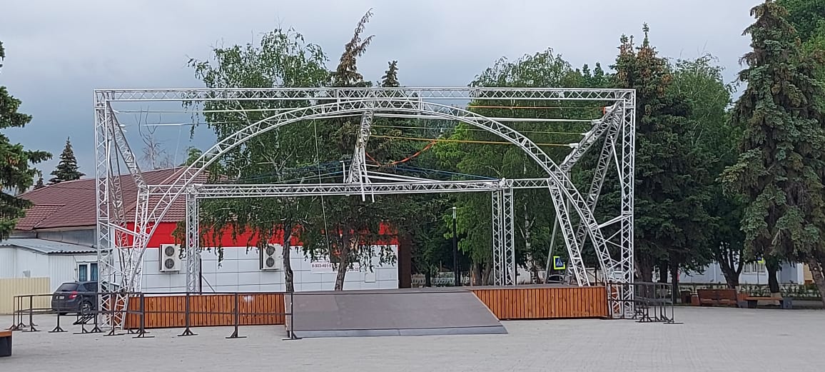 Администрация города на протяжении 2 месяцев выбирала материалы и согласовывала детали оборудования сцены с фирмой изготовителем.