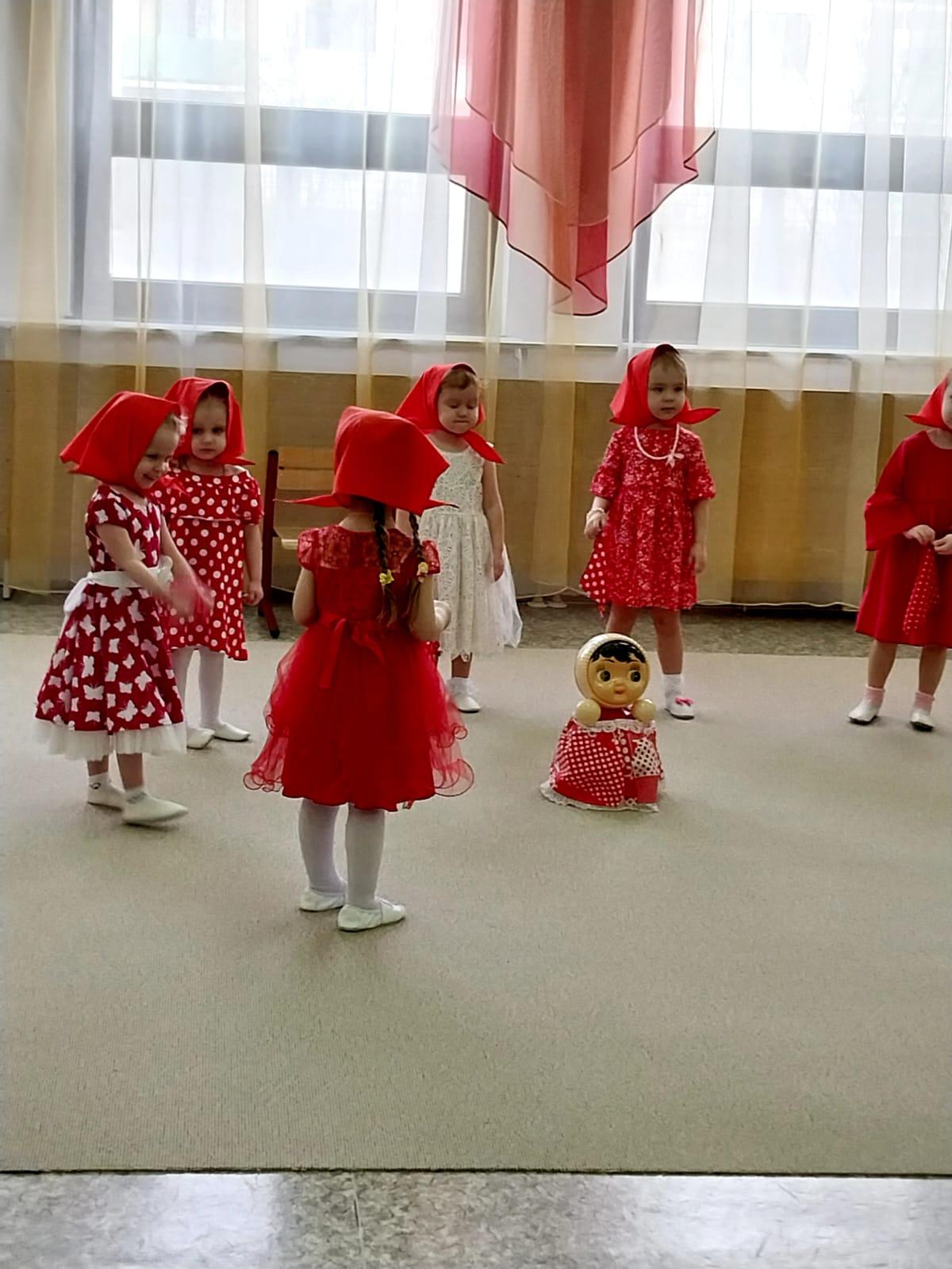 Открыли праздничный марафон самые маленькие артисты. Дети первых младших групп показали свои таланты, удивив мамочек умением танцевать, подпевать и играть. В гости к малышам пришла веселая Матрешка ( воспитатель Радченко А.В. ). Она принесла с собой яркие платочки, с которыми дети исполнили озорную пляску. Девочки показали свое умение танцевать с куклами, а мальчики показали фигурное вождение колясок. Детей вторых младших групп повеселил Петрушка ( инструктор по физкультуре Барановская О.П. ). Он дирижировал настоящим оркестром мамочек музыкантов. А мальчики исполнили задорный матросский танец.