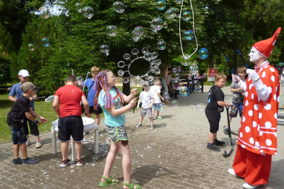 Огромный восторг у детей вызвало шоу мыльных пузырей, в котором ребятня принимала самое активное участие.