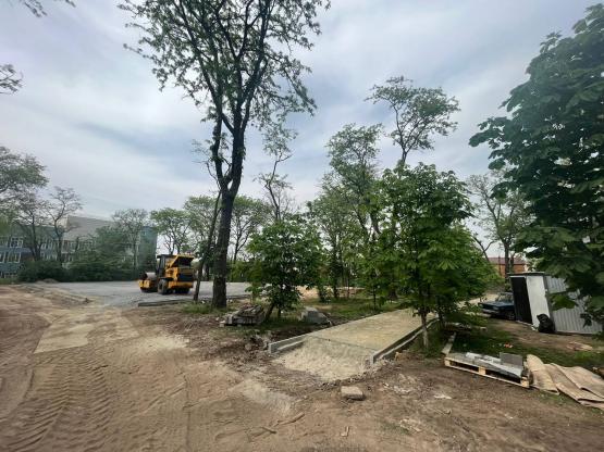 По его словам, на сегодняшний день уже выполнены работы по валке и обрезке аварийных деревьев, установке бордюрного камня, подготовлена площадка для установки современного детского игрового комплекса, завершается обустройство плиточного покрытия пешеходных дорожек.