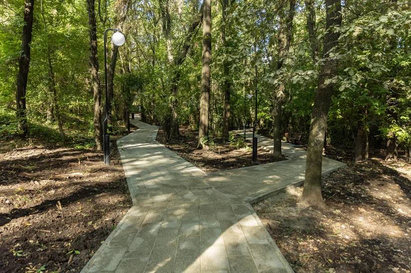 В рамках благоустройства в роще уже обновлены пять километров пешеходных маршрутов, установлены скамейки, урны, освещение, элементы навигации. Проведены работы по очистке русла балки.