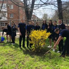 Юнармейцы и активисты «Движения первых» школ Таганрога принимают участие в весенних акциях «Чистый школьный двор», «Сад Победы»