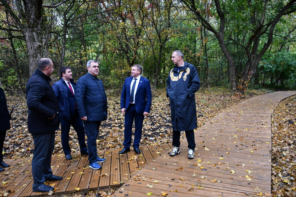Сегодня, 25 октября, глава администрации Аксайского района Константин Доморовский проверил ход работ по благоустройству эко-парка «Мухина балка».