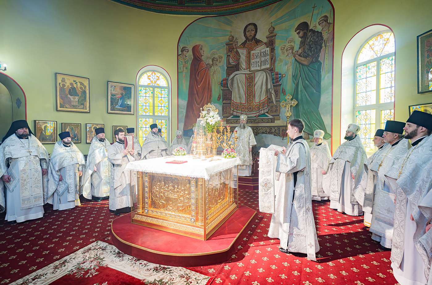 Песнопения богослужения исполнили основной и малый хоры храма Святой Троицы под управлением Виктории Бойко и Анны Осяк. Проповедь перед Причастием произнес клирик Преполовенского храма города Ростова-на-Дону иеромонах Аверкий (Шапошников).