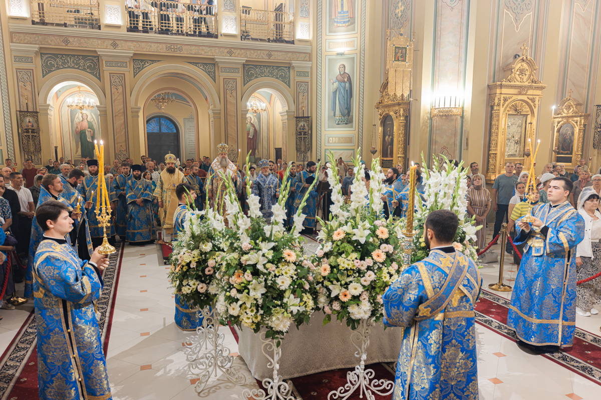 27 августа 2024 года, в канун праздника Успения Пресвятой Владычицы нашей Богородицы и Приснодевы Марии, Глава Донской митрополии митрополит Ростовский и Новочеркасский Меркурий совершил всенощное бдение в Ростовском кафедральном соборе Рождества Пресвятой Богородицы.