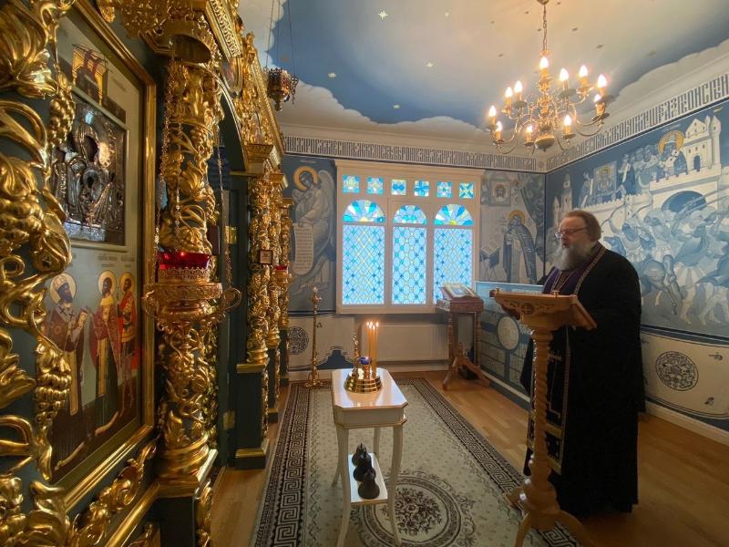 18 февраля 2023 года, во Вселенскую (мясопустную) родительскую субботу, Глава Донской митрополии митрополит Ростовский и Новочеркасский Меркурий совершил панихиду в Знаменской домовой церкви Архиерейского подворья города Ростова-на-Дону.