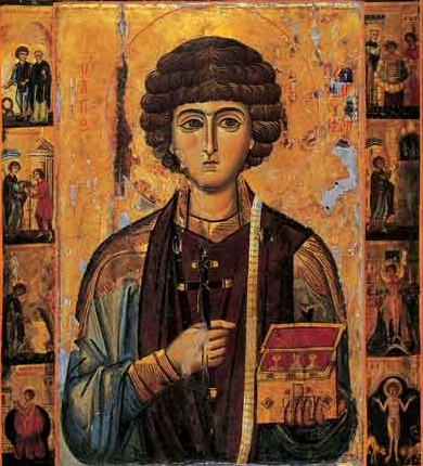 Завистники донесли императору о том, что Пантелеимон христианин. Юноша отказался отречься от веры, его приговорили к пыткам и казни. Верующие христиане обращаются к святому с просьбами о даровании здоровья родным, об исцелении души и тела.