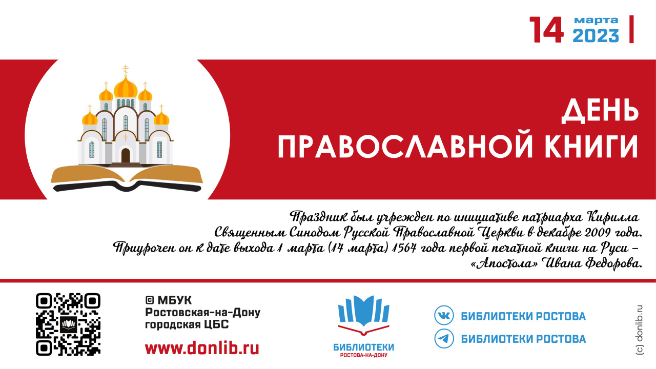 В библиотеках МБУК Ростовская-на-Дону городская ЦБС проходит цикл мероприятий, приуроченных к Дню православной книги.