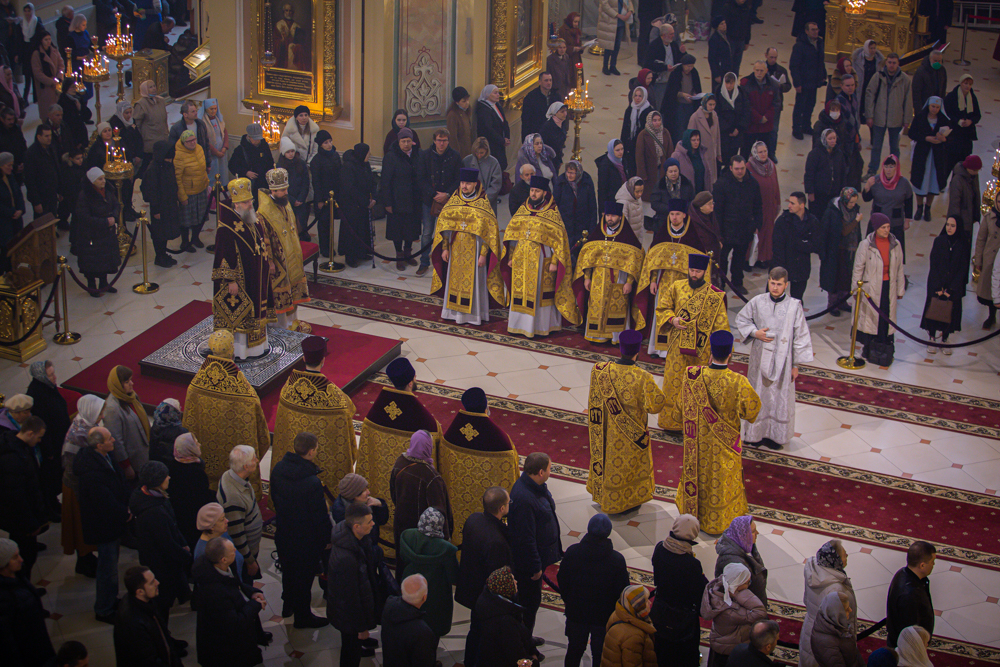 Песнопения богослужения исполнил хор собора под управлением протодиакона Владимира Зубрицкого. Проповедь перед Причастием произнес клирик собора иерей Александр Слабодин.