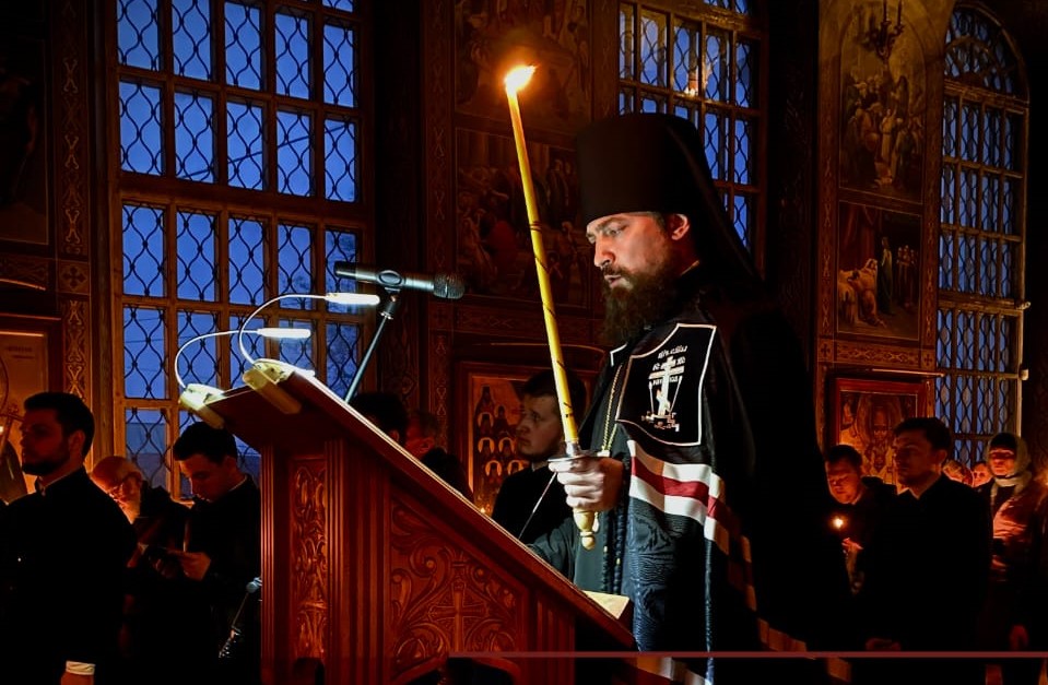 28 февраля 2023 года, во вторник первой седмицы Великого поста, викарий Ростовской епархии епископ Таганрогский Артемий совершил Великое повечерие с чтением покаянного канона преподобного Андрея Критского в храме Преполовения Пятидесятницы при Донской духовной семинарии города Ростова-на-Дону.