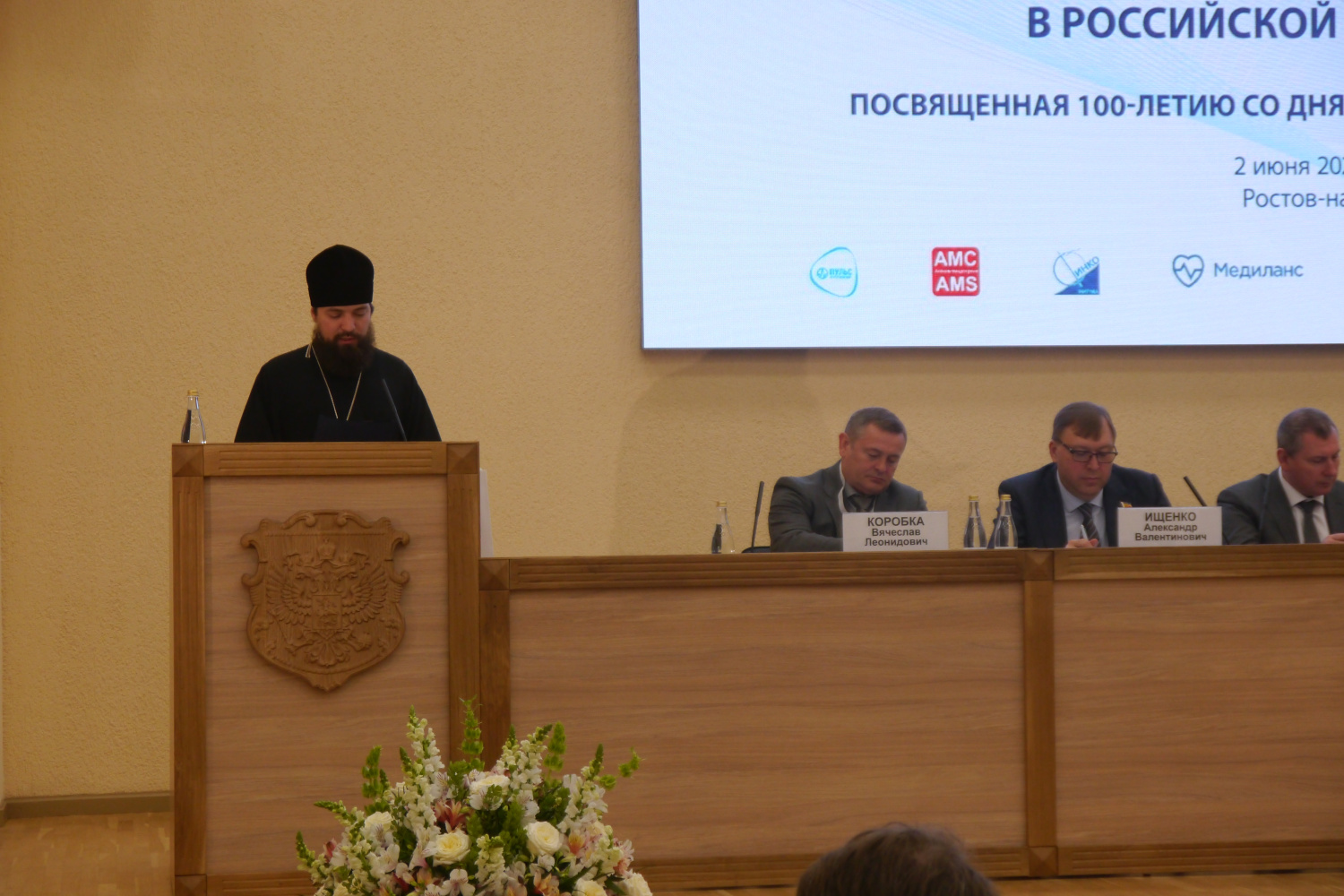 Также с приветственными словами выступили ректор Федерального государственного бюджетного учреждения высшего образования «Ростовский государственный медицинский университет» Сергей Шлык и профессор, академик РАН, президент федерального государственного бюджетного учреждения «Национальный медицинский исследовательский центр сердечно-сосудистой хирургии имени А.Н. Бакулева» Лео Бокерия.