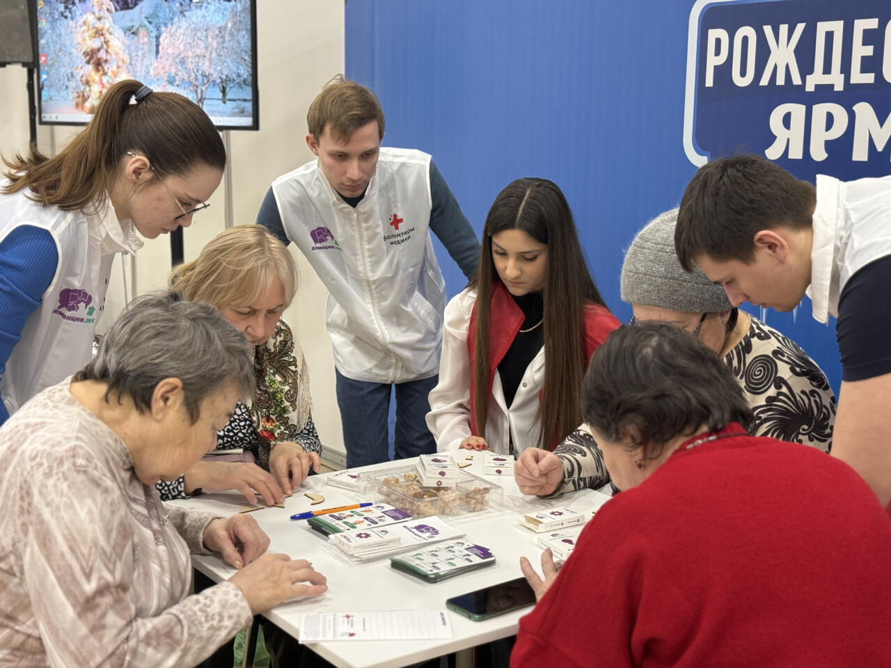 Участниками стали пенсионеры — посетители рождественской ярмарки, проходившей в ДонЭкспоЦентре, а также члены организации «Серебряные волонтеры».